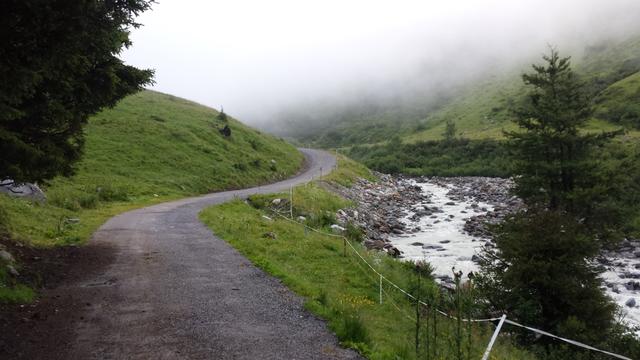wir erreichen die breite Fahrstrasse. Das ist die Notabfahrt für die Skifahrer Datum 02.08.2016