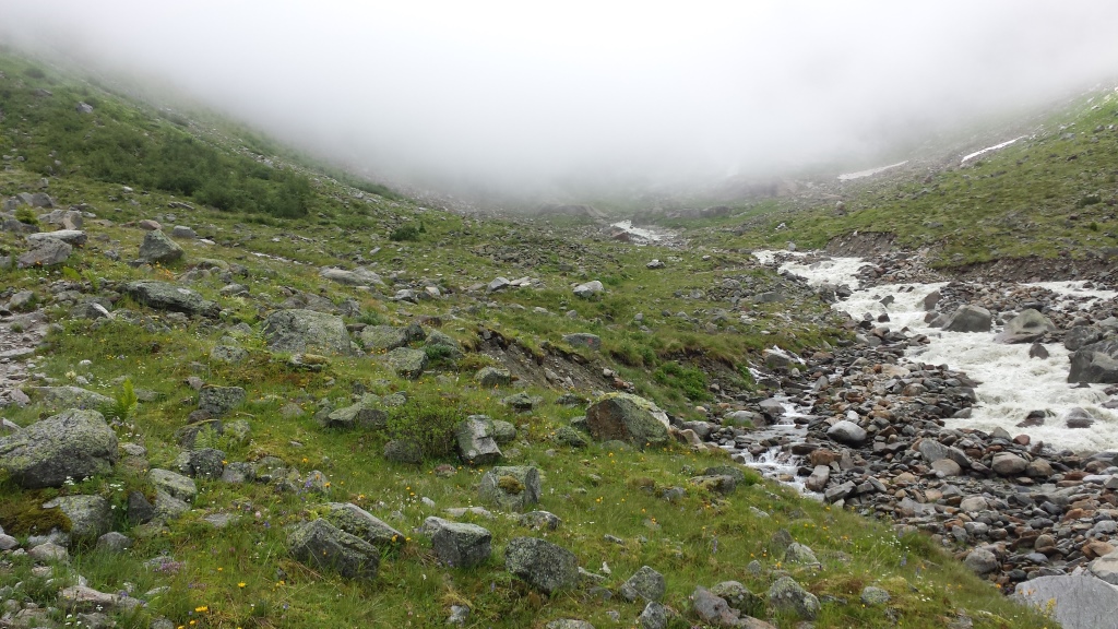neben uns der reissende Gletscherbach. Der Lärm ist ohrenbetäubend Datum 02.08.2016