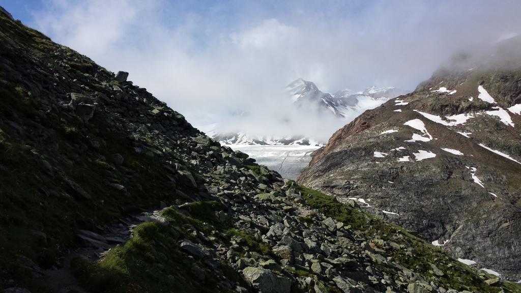 vor uns taucht der Mittelberggletscher auf. 1855 reichte der Gletscher noch bis ins Tal Datum 02.08.2016