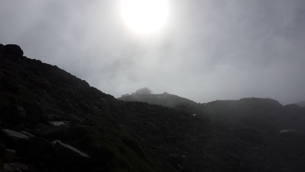 unter uns verschwindet die Braunschweigerhütte im Nebel Datum 02.08.2016