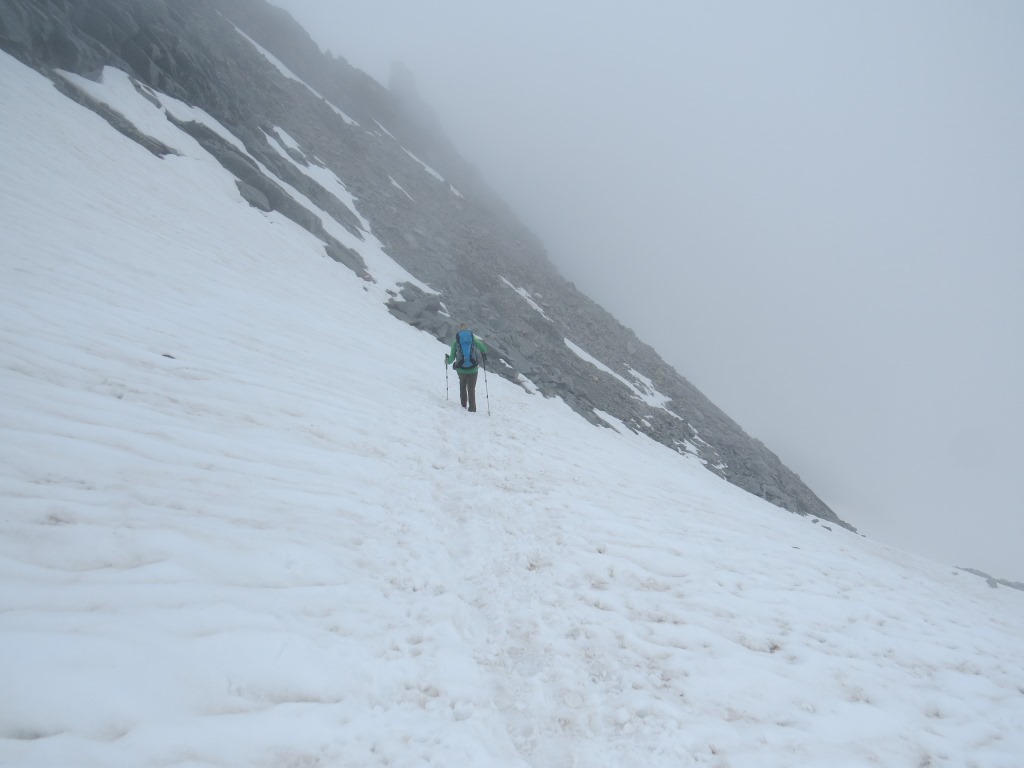 wir nehmen den Hauptweg unter die Füsse und müssen die ersten Altschneefelder überqueren Datum 02.08.2016