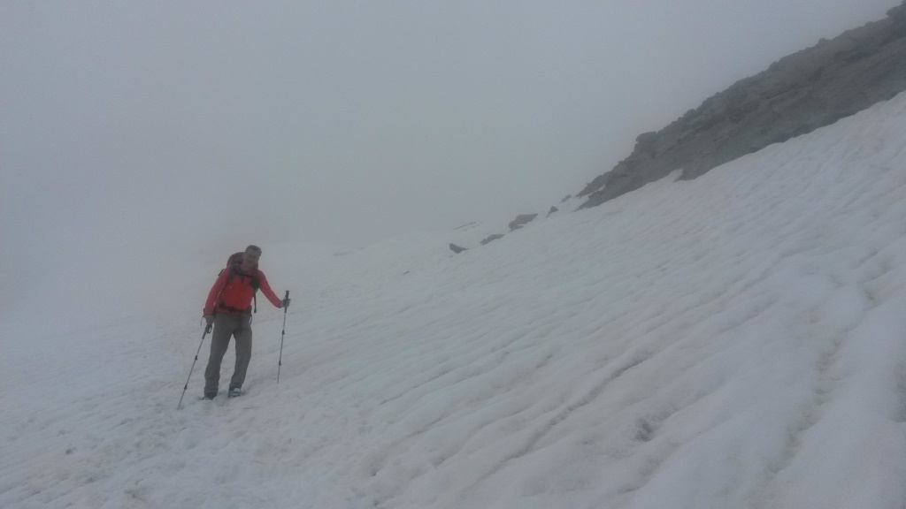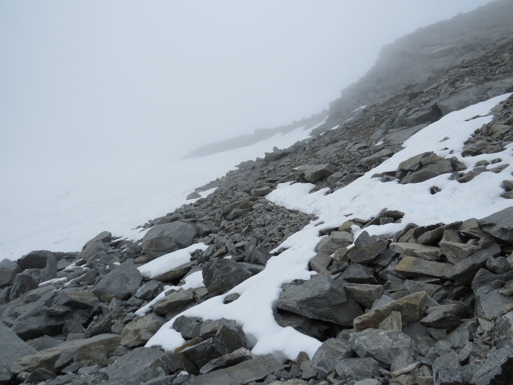vorsichtig steigen wir über Blockschuttfelder, Geröll und Schneefelder abwärts Datum 02.08.2016