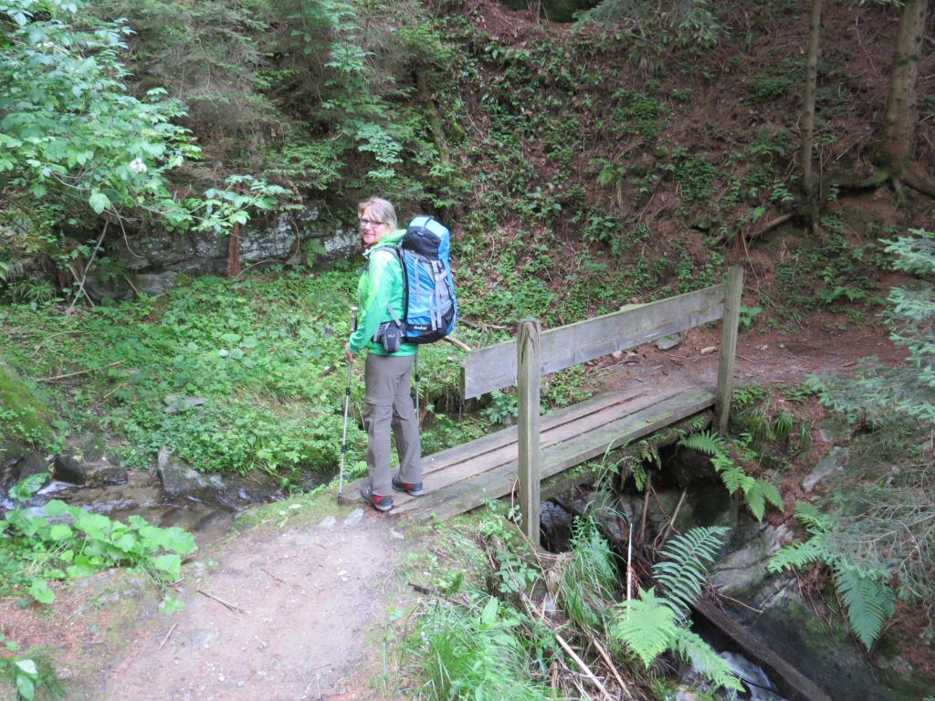 über eine Eisenbrücke überqueren wir den Fartleisbach der sich eine tiefe Schlucht gegraben hat Datum 03.08.2016