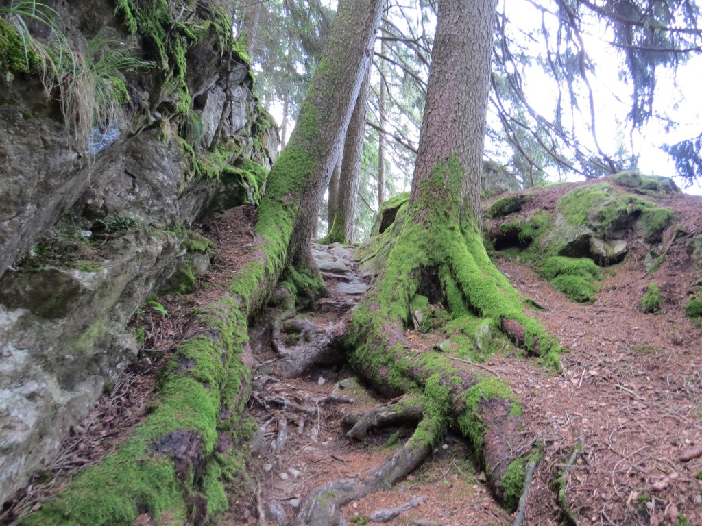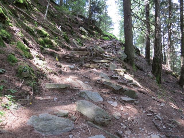unerbittlich windet sich der Weg bergaufwärts durch den Wald Datum 03.08.2016