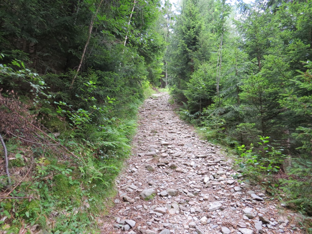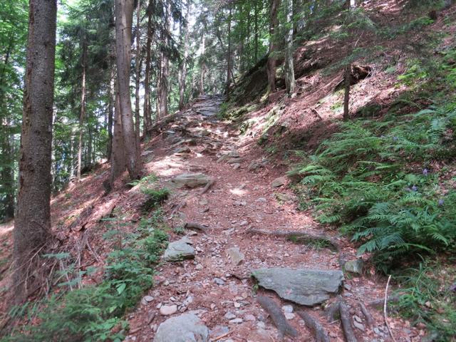 es geht wieder durch den Wald steil und endlos aufwärts Datum 03.08.2016