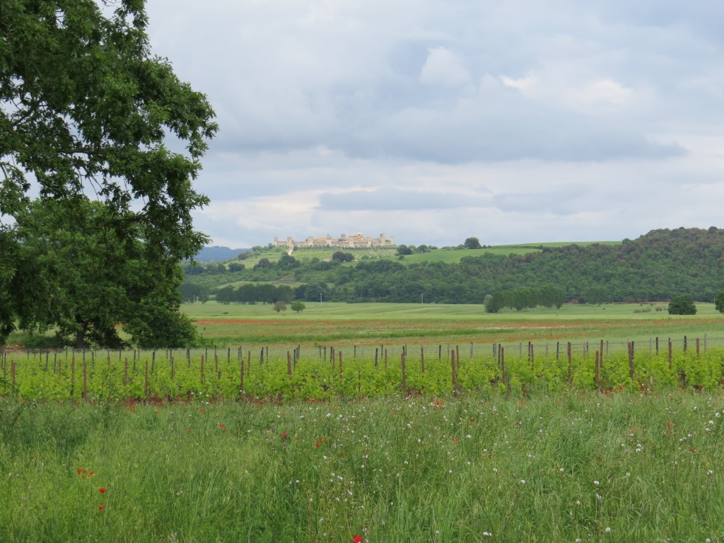 was für ein herrlicher Blick zum auf dem Hügel thronenden Stätdchen Monteriggioni