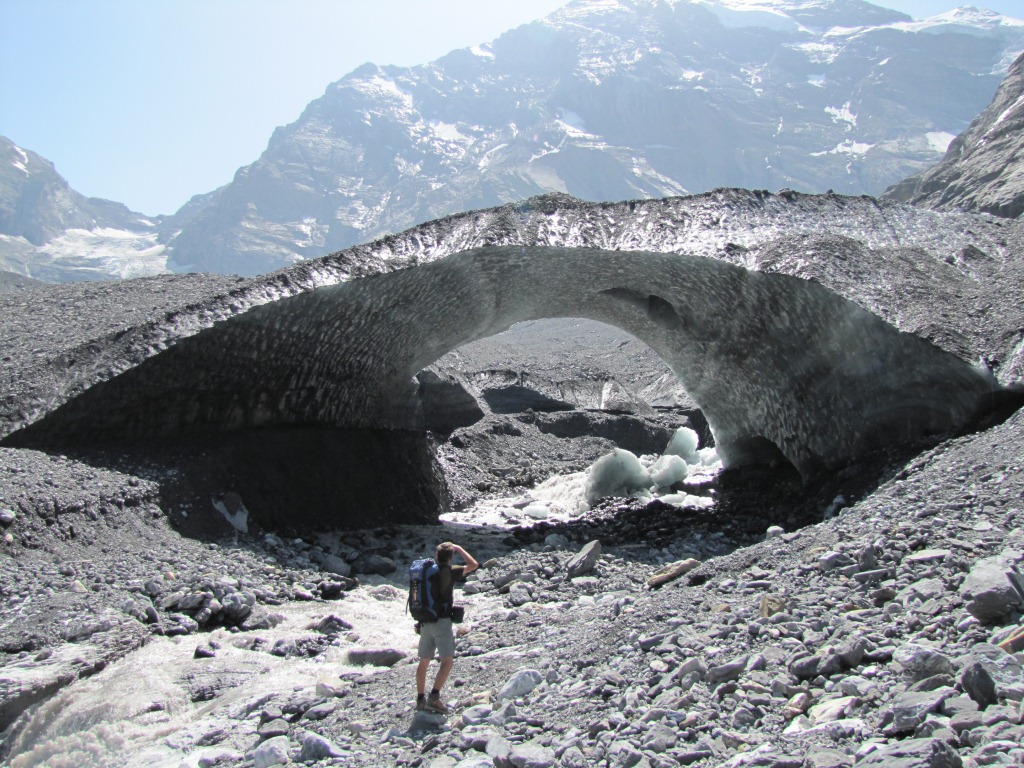 auf diesem Foto gut ersichtlich. Der Gletscher ist mit einer dicken Schuttschicht bedeckt