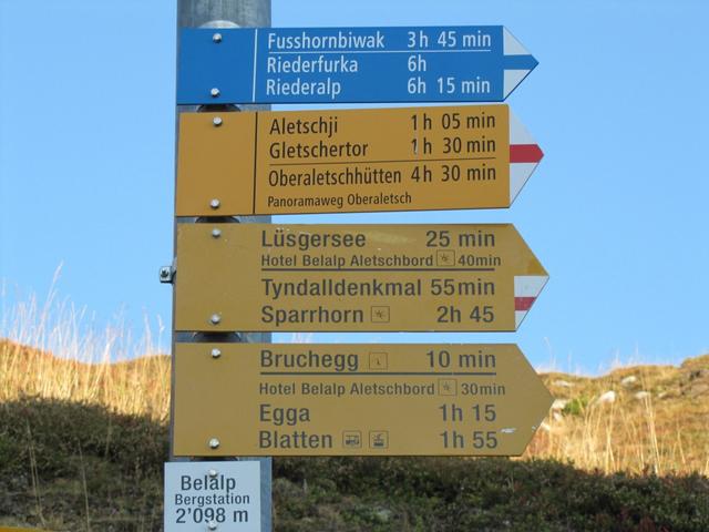 Wegweiser bei der Bergstation von Belalp 2098 m.ü.M. Datum 17.01.2012