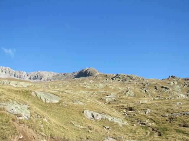 rechts unter der felsigen Gratschneide geht die Wanderung weiter, bis unter den Gipfelaufbau Datum 18.01.2012