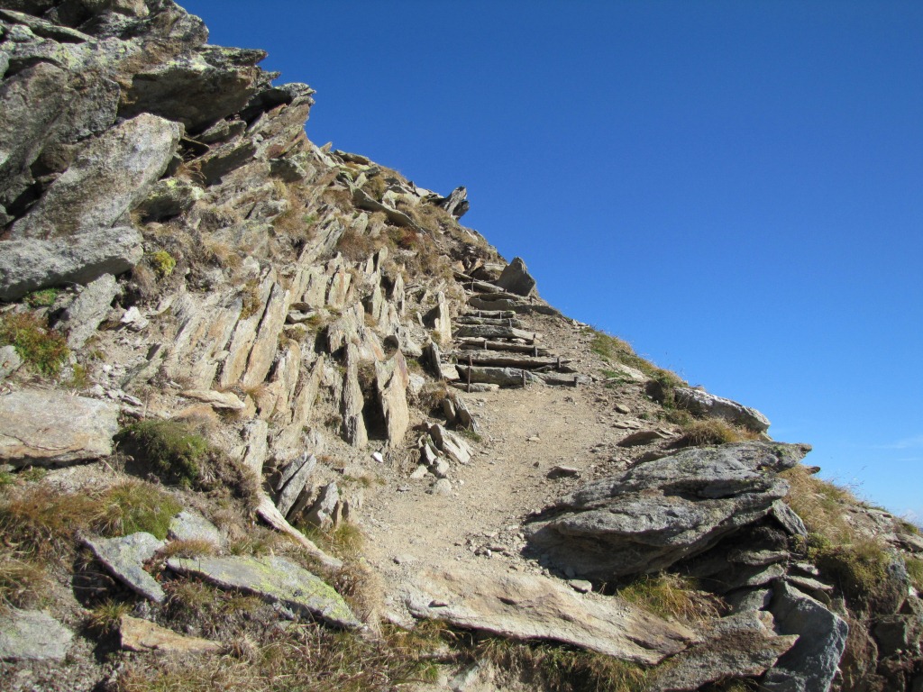 links an dieser felsigen Gratschneide führt unser Weg nun abwärts Datum 18.01.2012