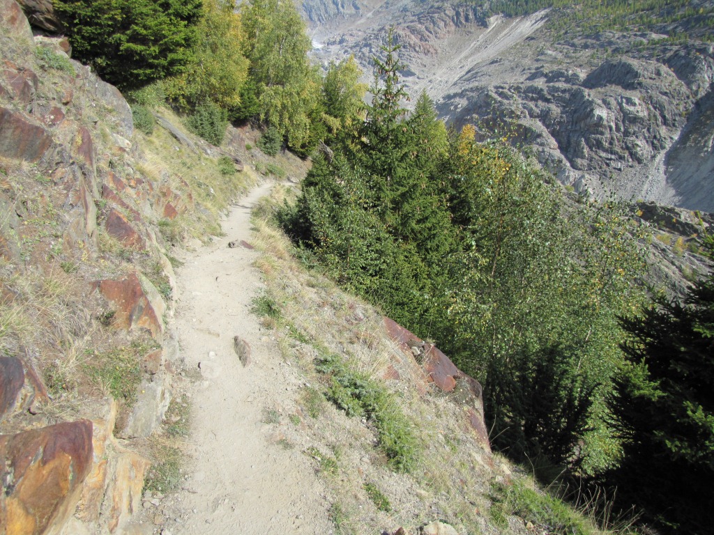 gut ersichtlich der neu erbaute Panoramaweg der zur Oberaletschhütte führt Datum 18.01.2012