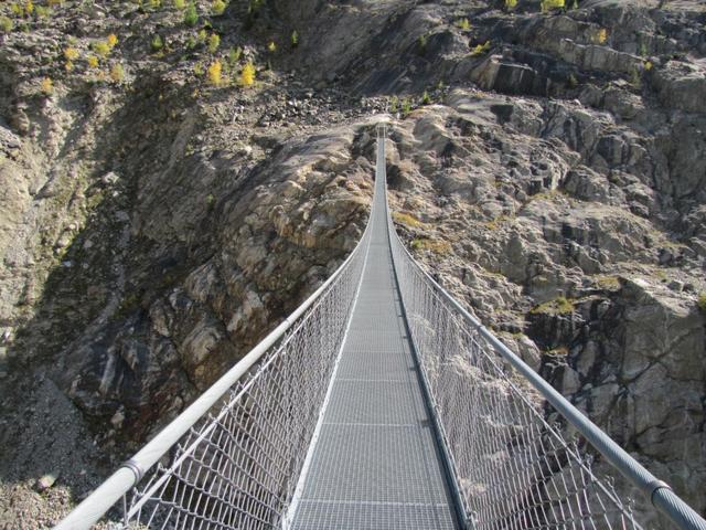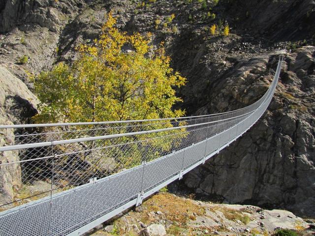 die schöne aus Stahl erstellte Hängebrücke über die Massaschlucht. 1 m breit, 80 m über die Schlucht, 124 m lang Datum 18.01.2012