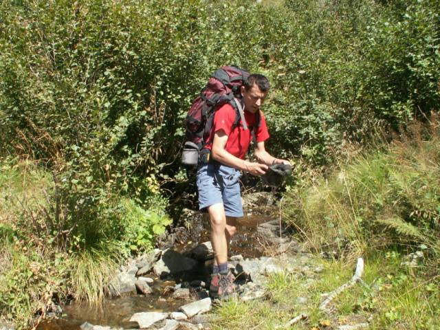 Mäusi hält den Fuss in der noch jungen Maggia