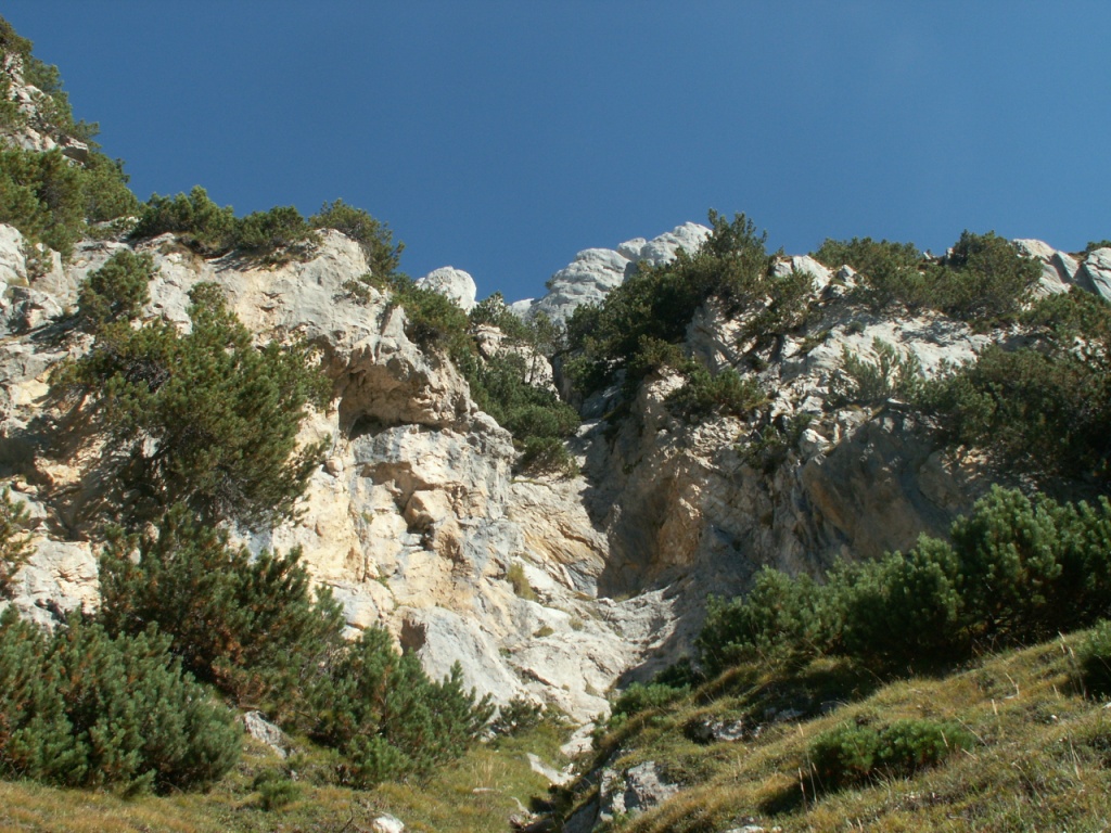 Blick rauf zum Passo Lei di cima