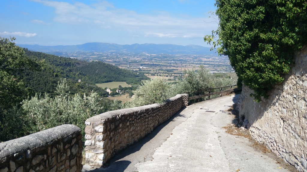 ganz weit weg erkennen wir Trevi und den Eremo Francescano delle Allodole. Wir grüssen dich Gaja