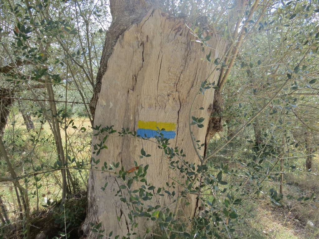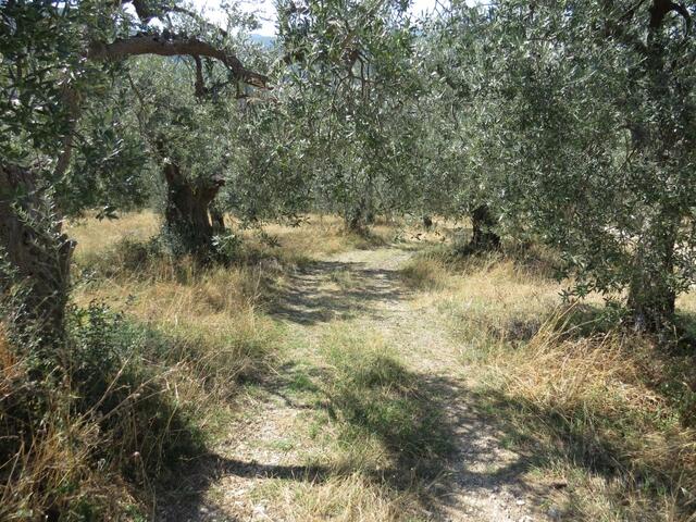 der Wanderweg schlängelt sich wieder durch einen Olivenhain