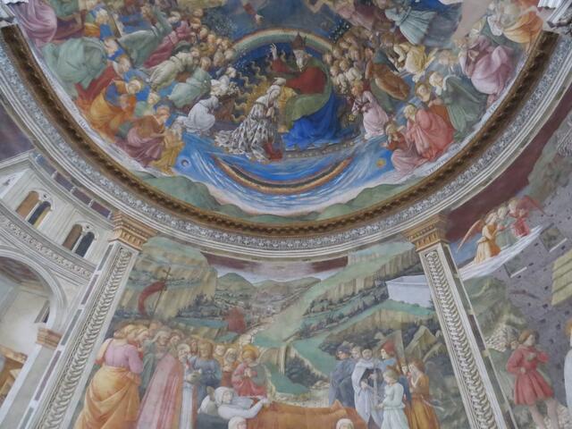 Sehenswert sind die sehr farbenprächtigen Fresken im Chorbereich