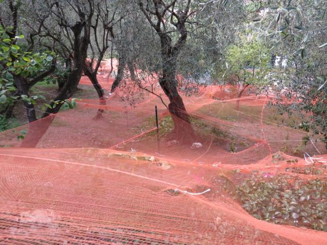 die Olivenernte steht bevor. Überall sind Netze gespannt um die Oliven einzusammeln