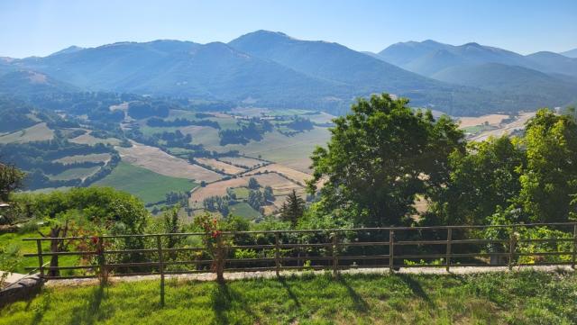 in der Ebene angekommen blicken wir zurück nach Monteleone di Spoleto