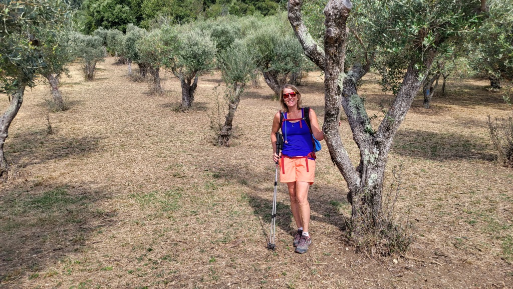 wir lassen den rechtsabbiegenden Pfad auf den Monte Acero unbeachtet, und verlassen über Olivenhaine den Berghang