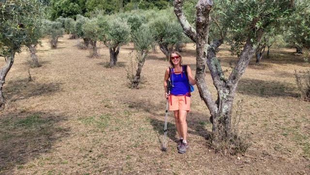 Erinnerungsfoto aufgenommen zwischen Olivenbäume