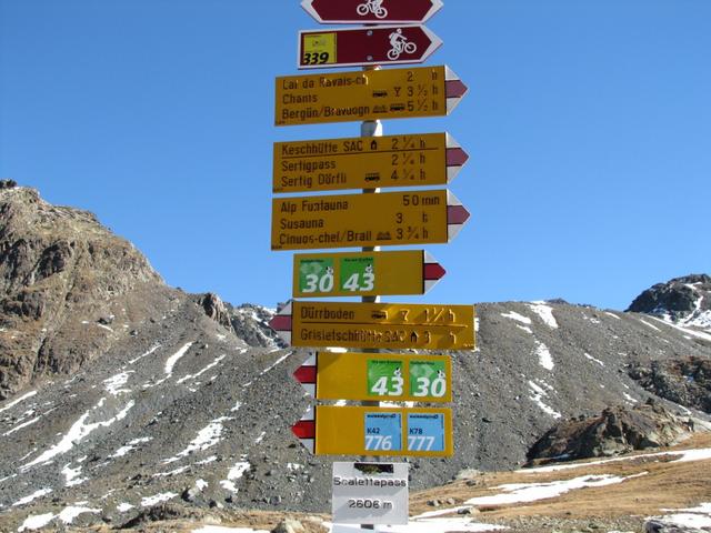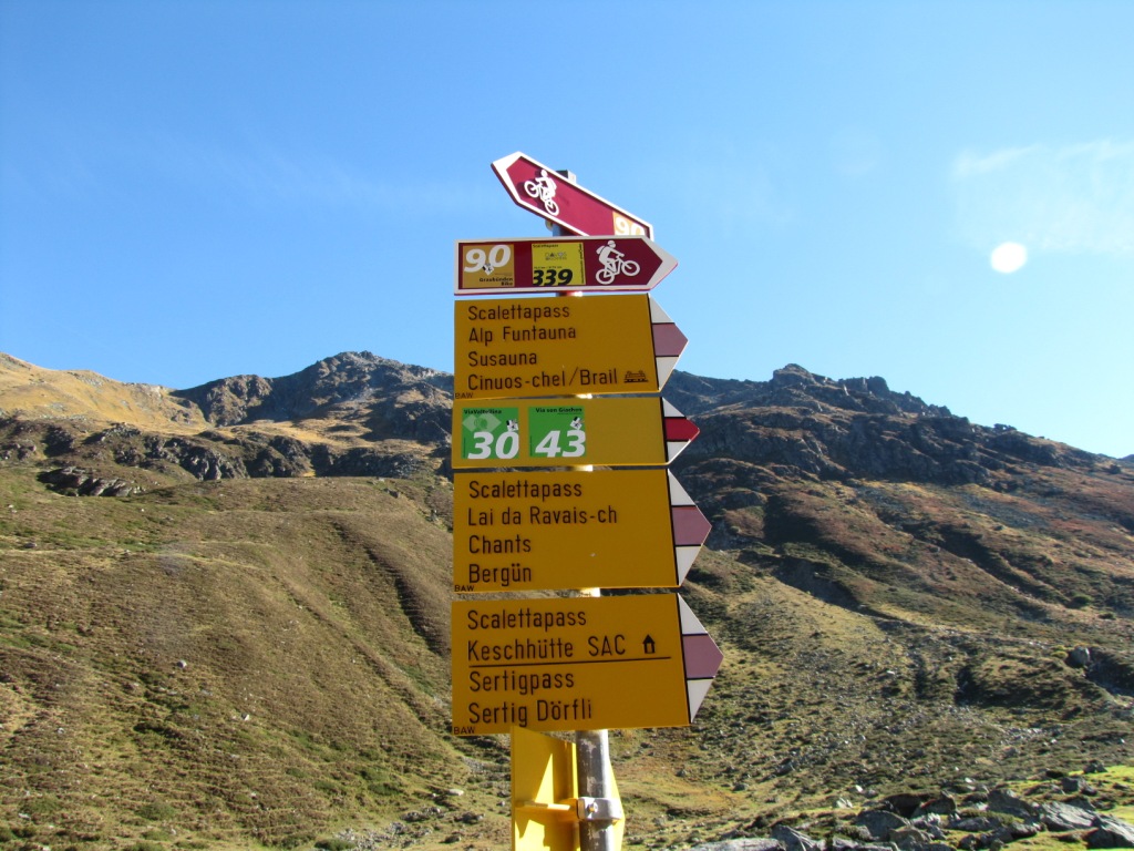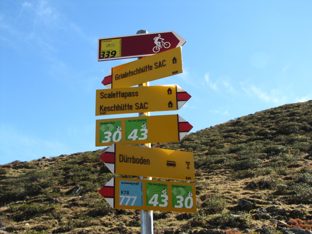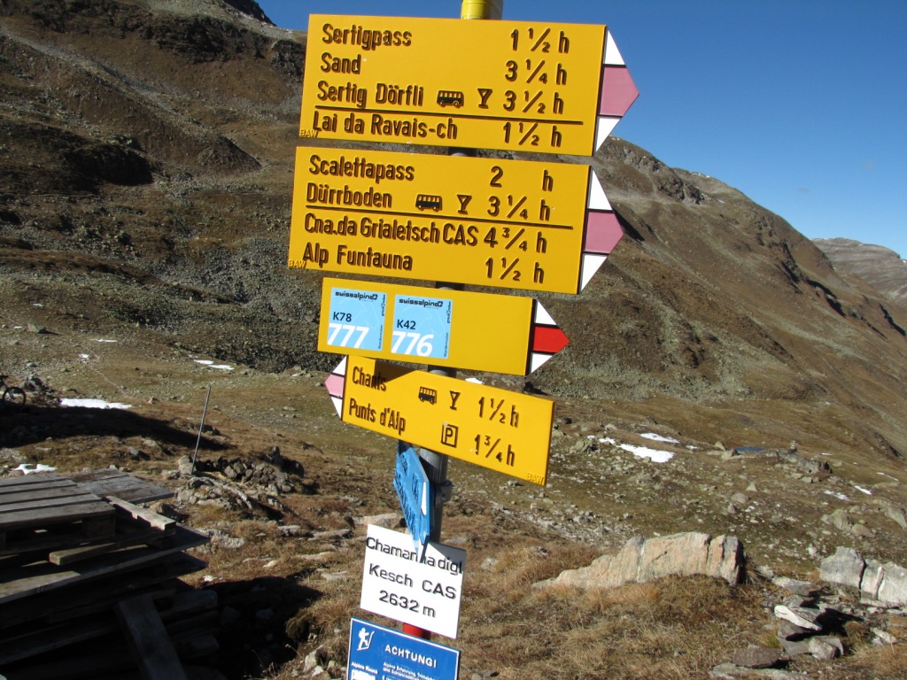 Wegweiser beim Scalettapass 2606 m.ü.M.