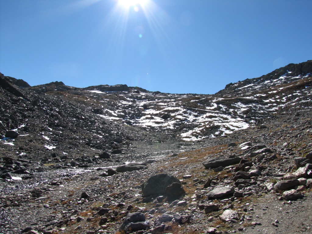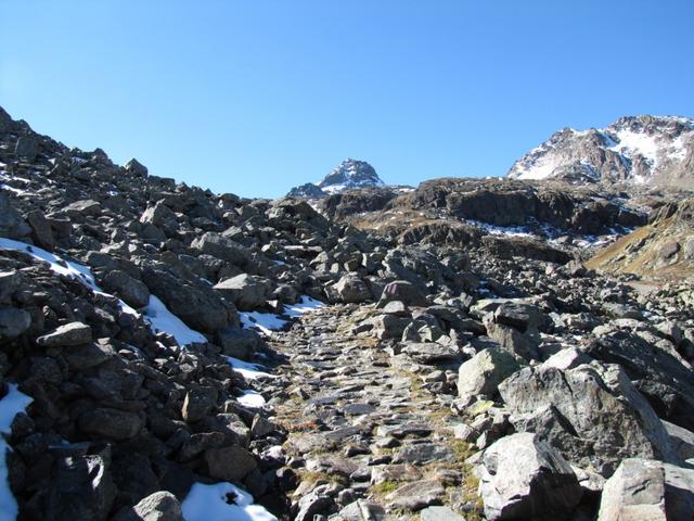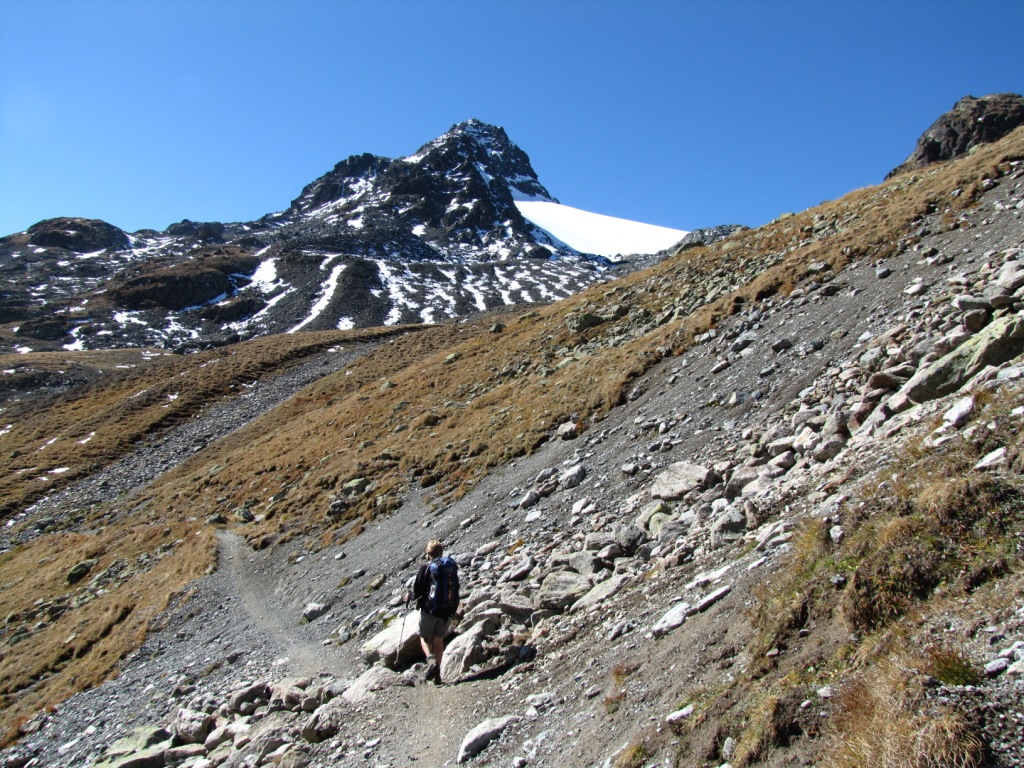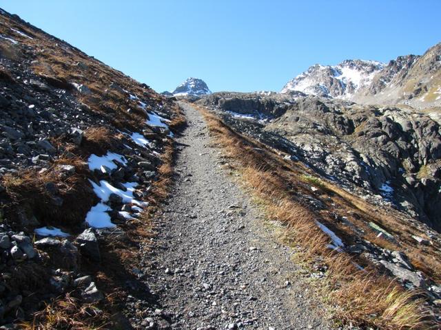 wir wandern geradeaus Richtung Chamanna digl Kesch
