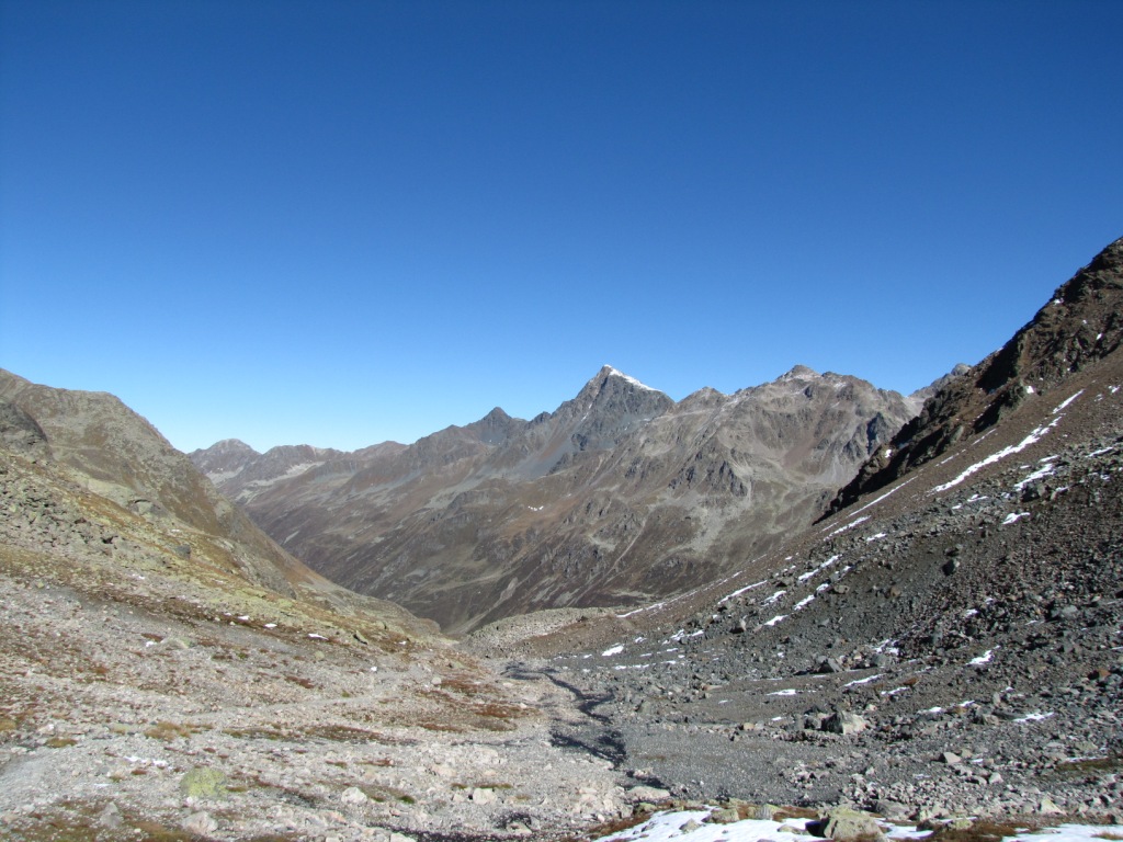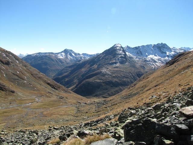 Blick zurück Richtung Piz Grialetsch, Piz Vadret und das ganze Val Funtauna