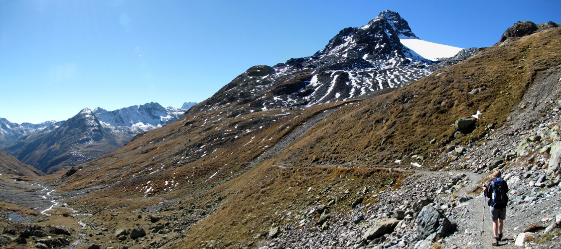 Breitbildfoto Höhenweg vom Scalettapass, Richtung Chamanna digl Kesch