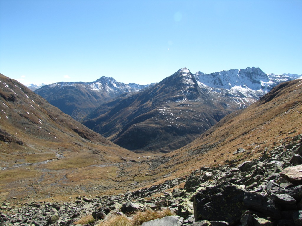 Breitbildfoto vom Scalettapass aus gesehen, Richtung Val Funtauna und Val Susauna