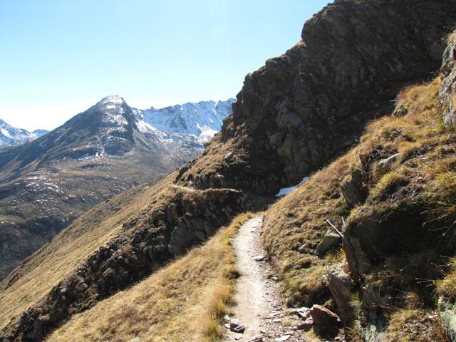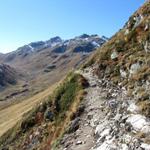 über einen breiten Wanderweg führt uns der Bergpfad nun Richtung Scalettapass
