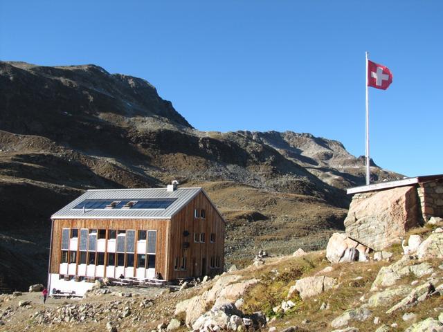 Blick ins Val dal Tschüvel und Kesch Hütte mit Piz Kesch