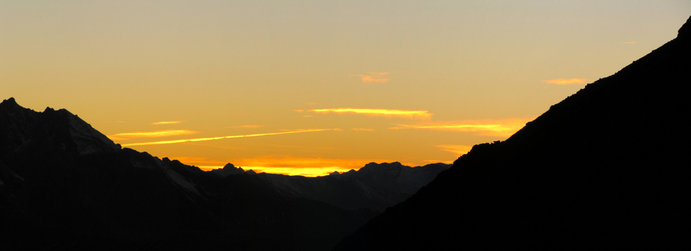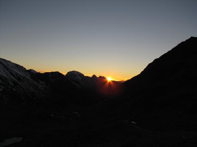 die Sonne geht hinter dem Piz Ela und Tinzenhorn unter
