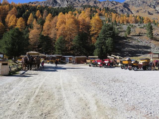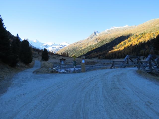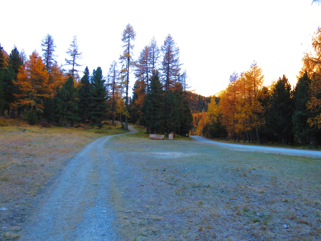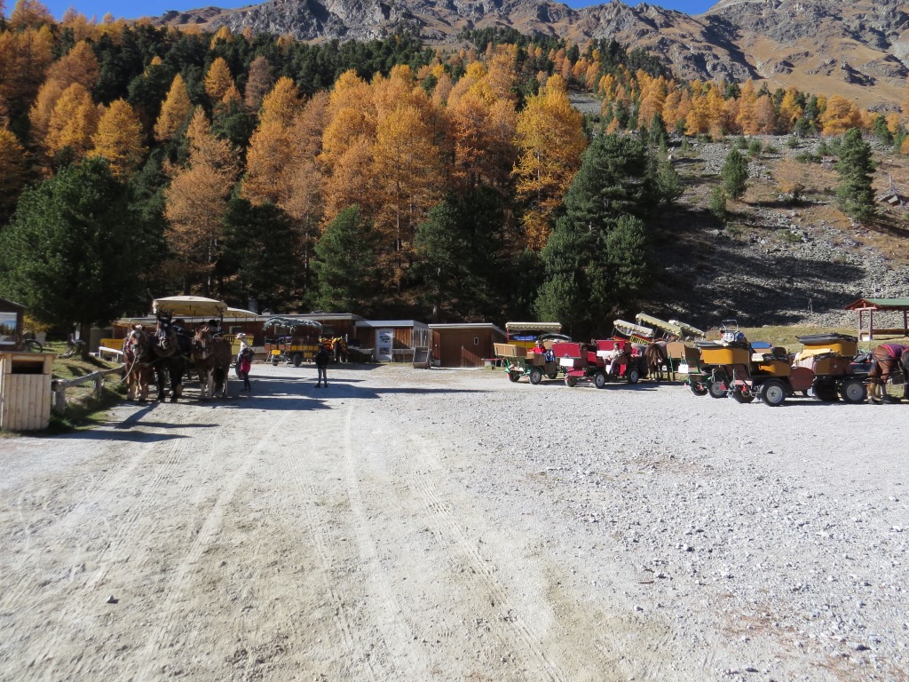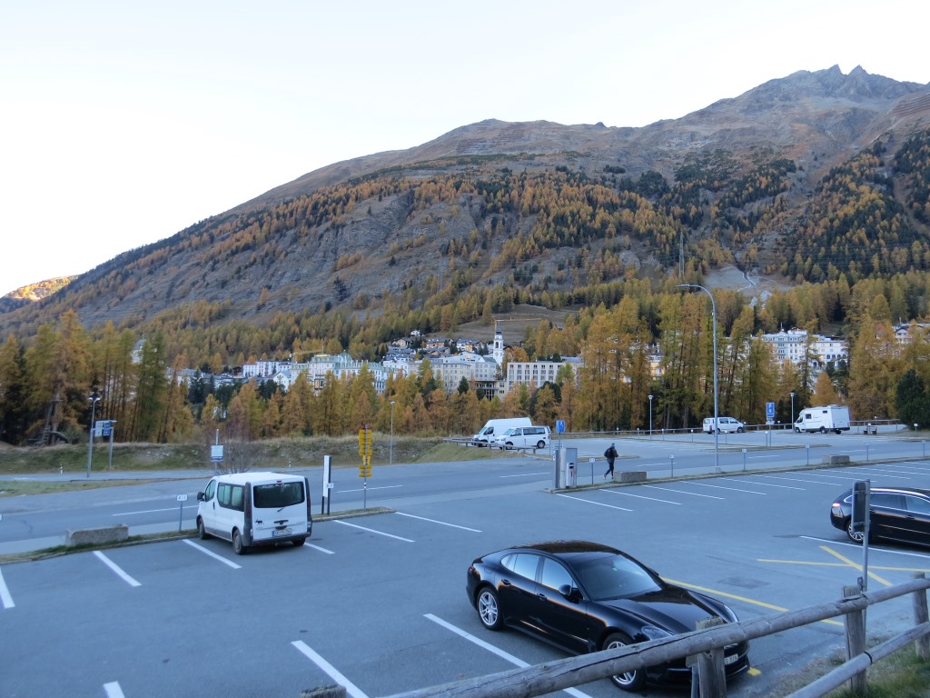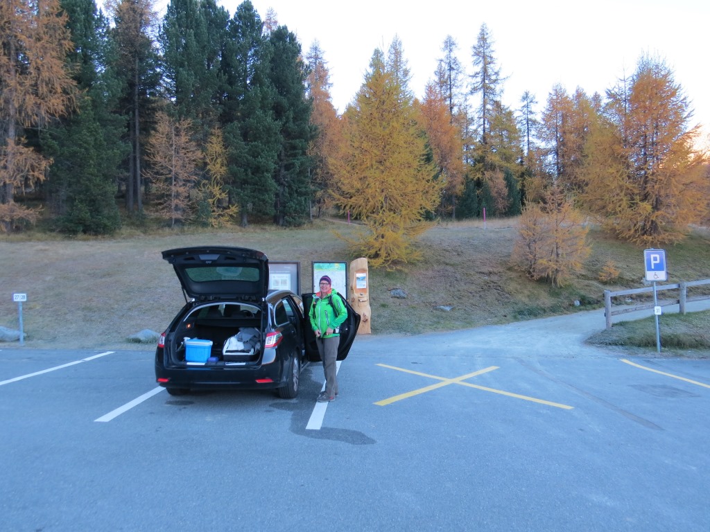 von Pontresina mit dem Auto zum grossen Parkplatz, bei Punt Ota 1774 m.ü.M.
