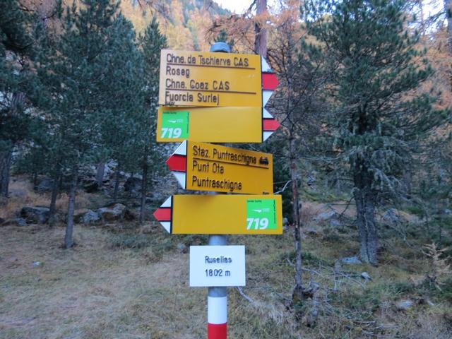 vorbei an der Weggabelung von Rusellas 1802 m.ü.M...