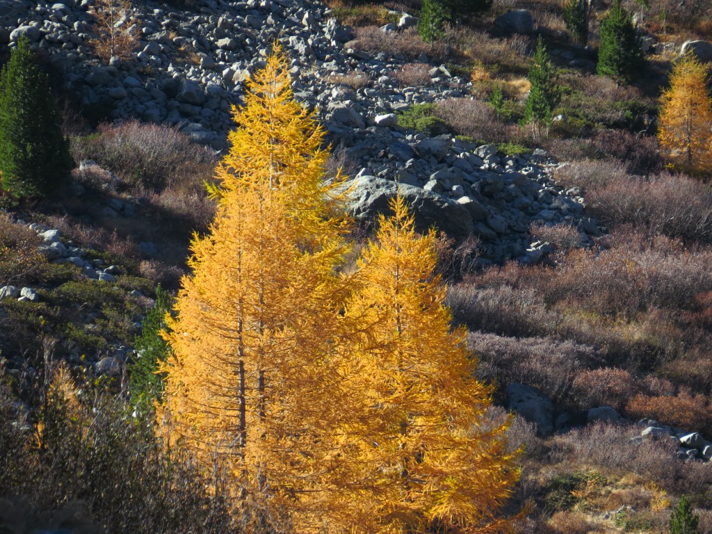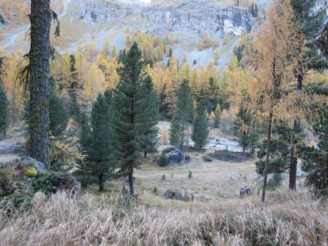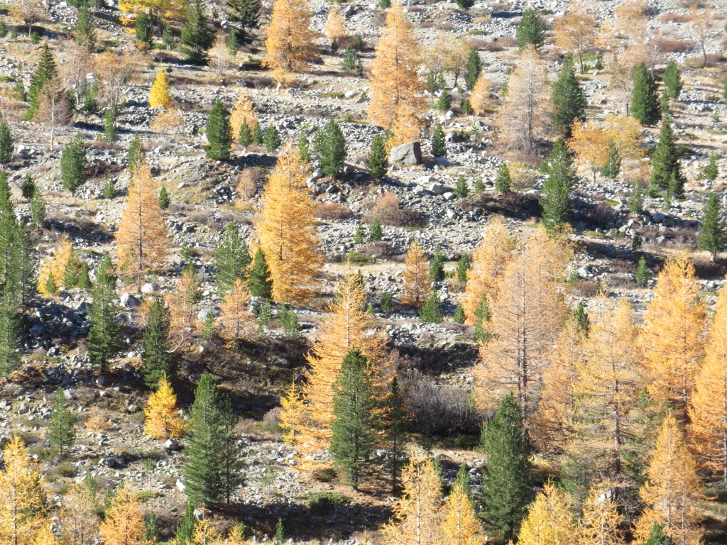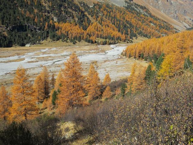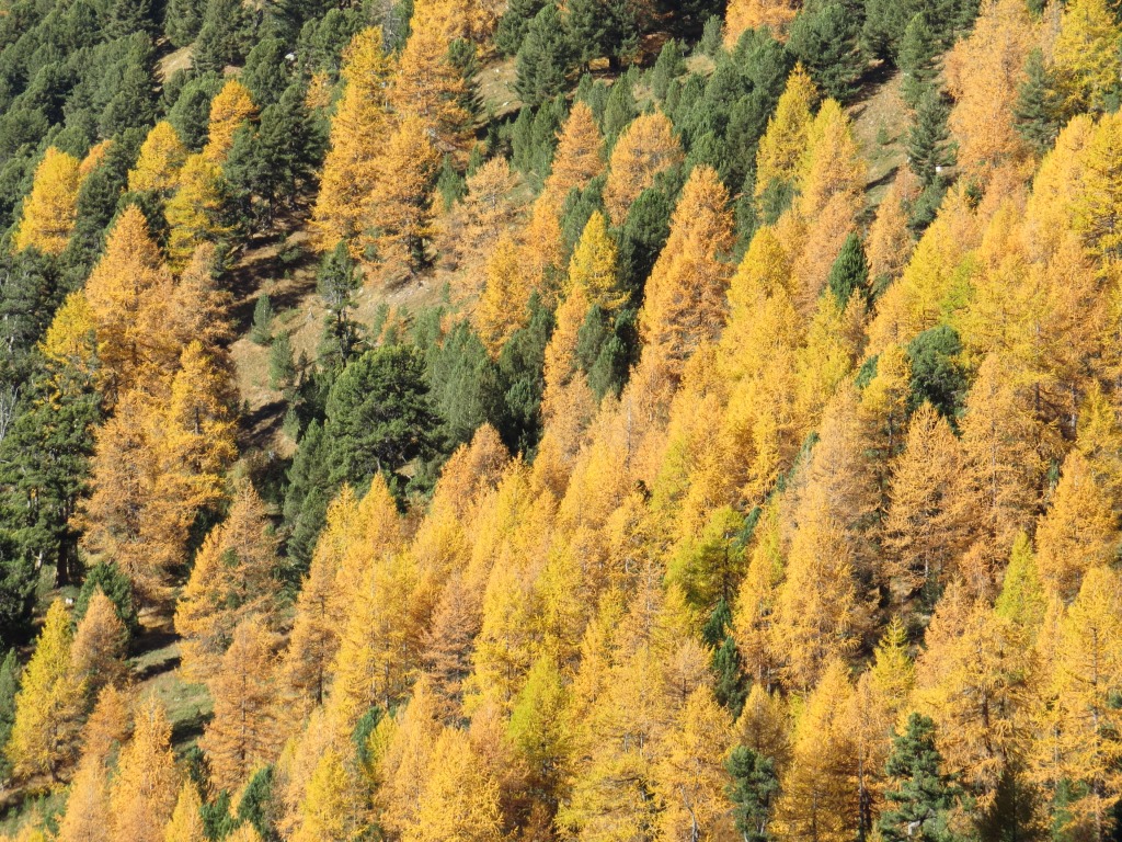 ...erreichen wir die ersten Orange-Gold leuchtende Lärchenwälder