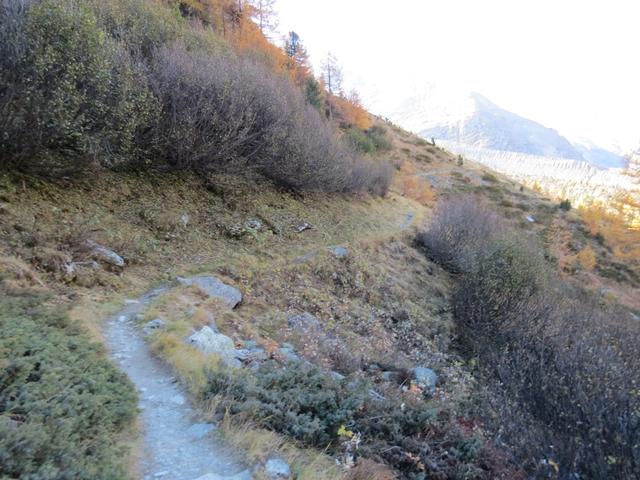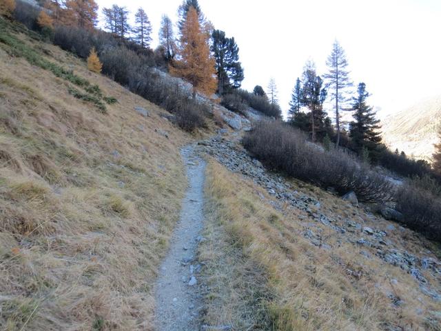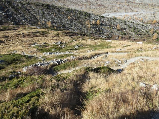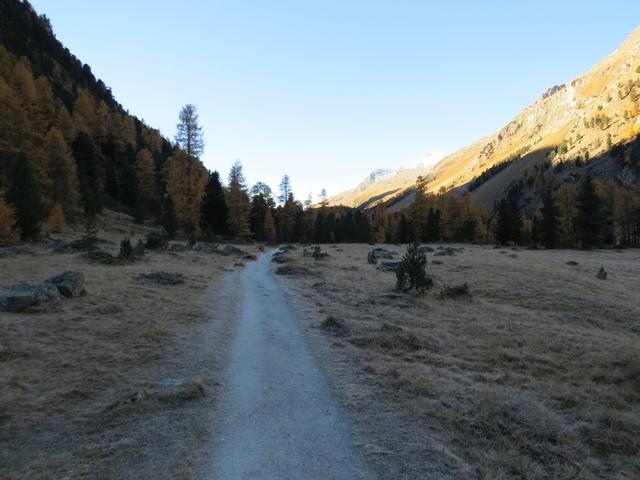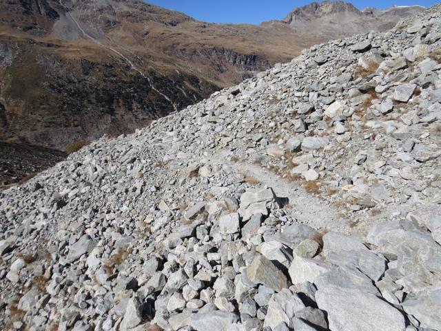 auf der anderen Talseite, biegen wir in den Wanderweg, der von der Fuorclas Surlej hinunterführt