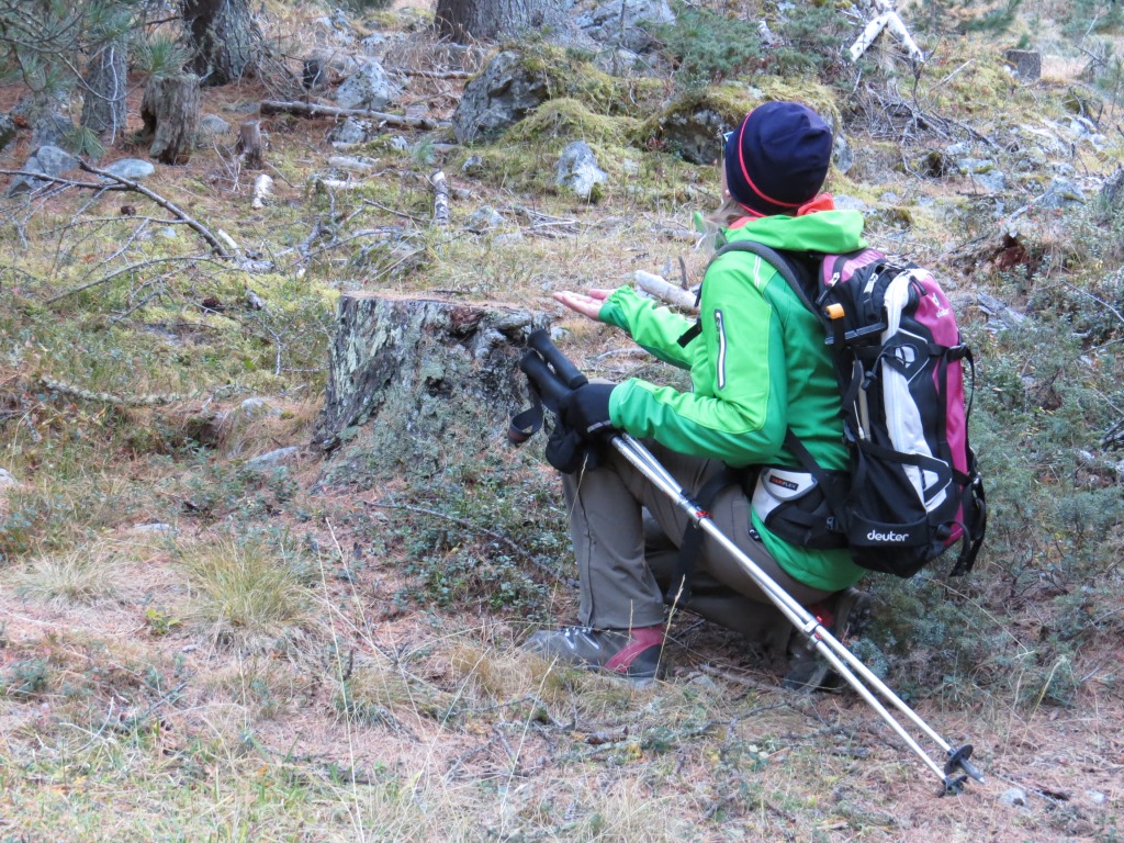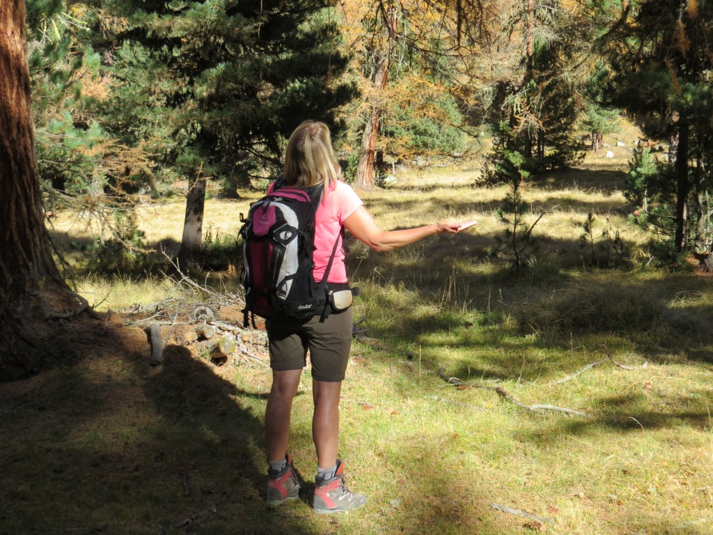 wir wandern durch den sehr schönen Arven- und Lärchenwald von God da Rusellas