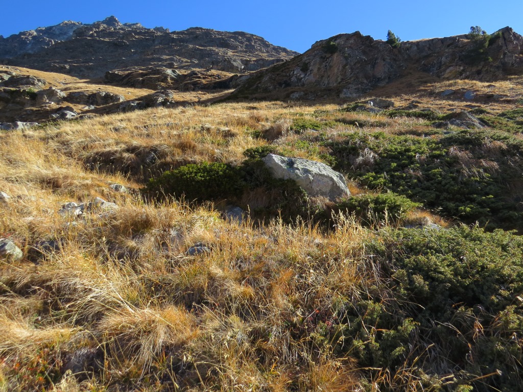 alles am Osthang des Piz Tschierva entlang, wandern wir weiter abwärts zu Punkt 2030 m.ü.M.
