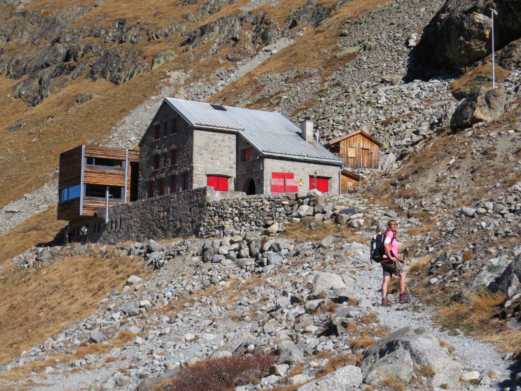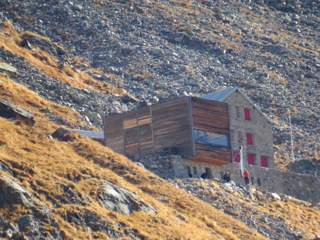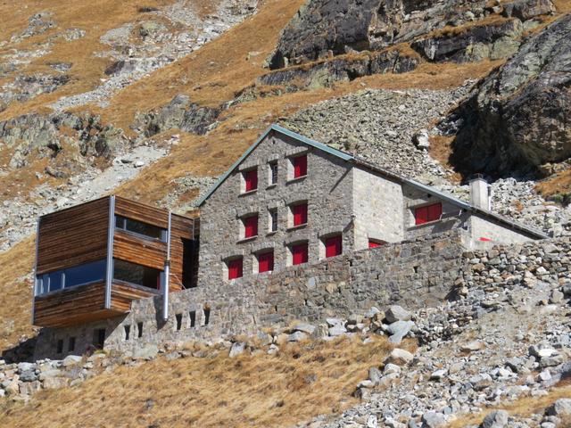 ...liegende Chamanna da Tschierva 2583 m.ü.M. mit seinem modernen Anbau