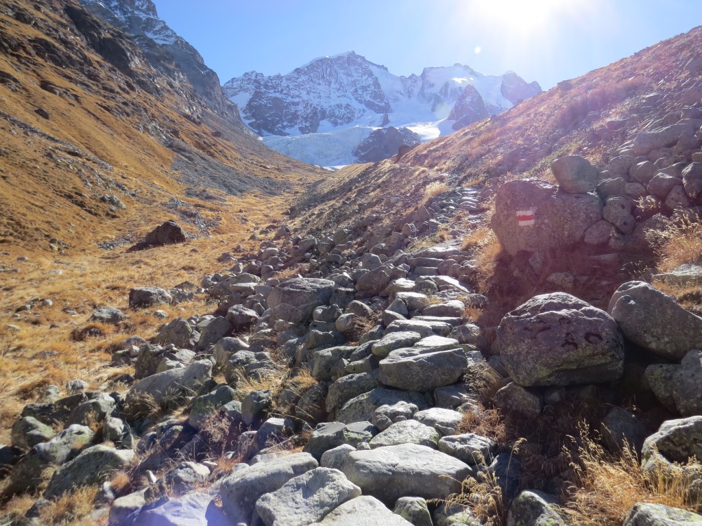 ...auf dem sich der Weg der grossen, rechten Seitenmoräne des Tschiervagletschers nähert