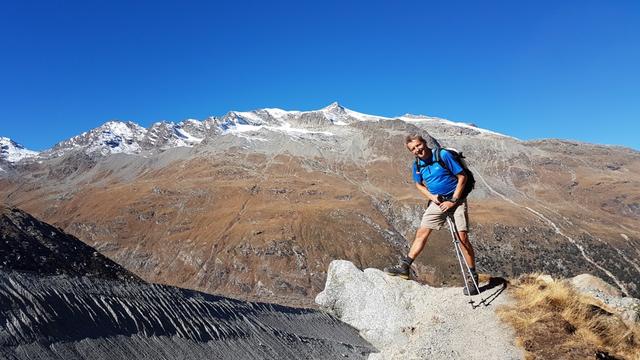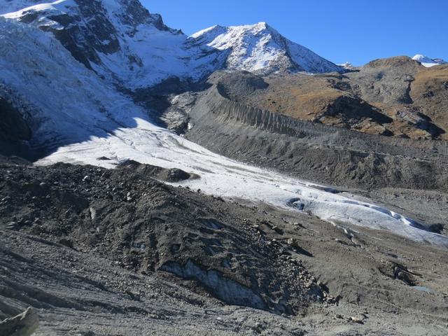 hier auf diesem schmalen Rand der Seitenmoräne ist zu erkennen, wie riesig der Gletscher vor nicht allzu langer Zeit noch war