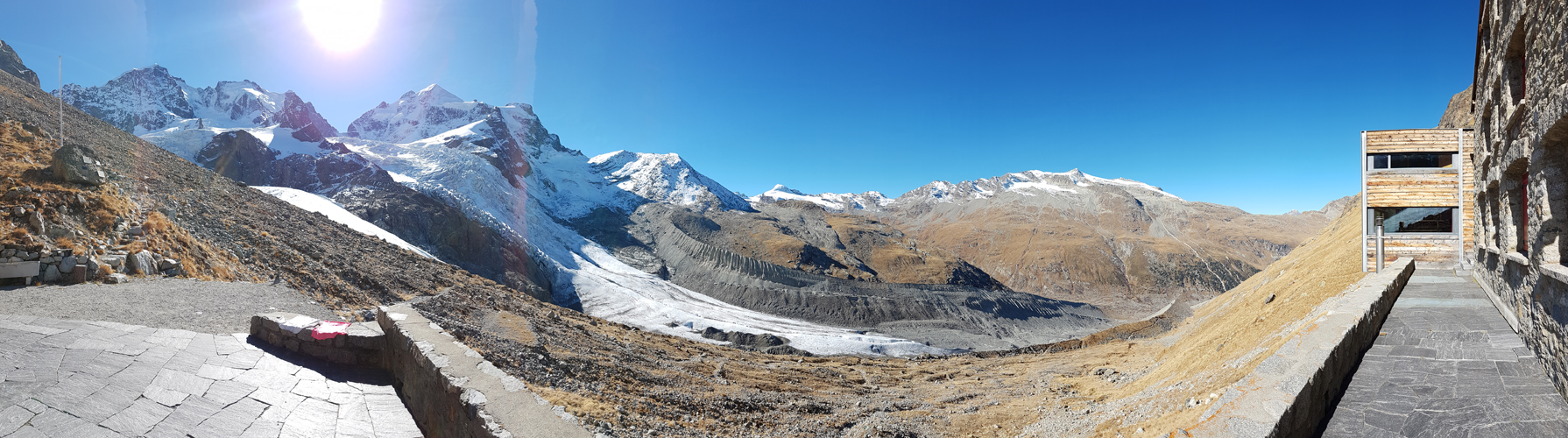 sehr schönes Breitbildfoto mit Blick auf den Gletscher. Bei Breitbildfotos nach dem anklicken, immer noch auf Vollgrösse klick