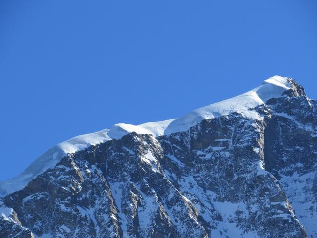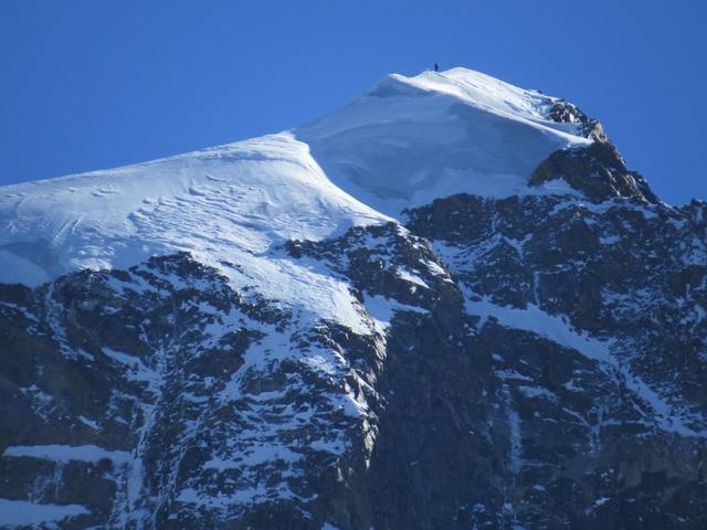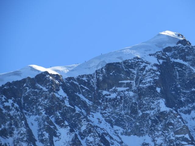 der Biancograt erstrahlt im Licht der Sonne. Seht ihr die Bergsteiger?