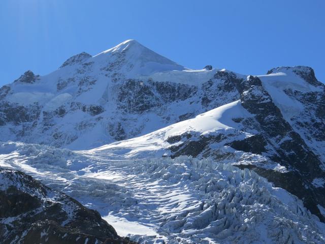 Blick hinauf zum Piz Roseg mit Vorgipfel (Schneekuppe)