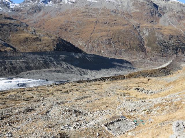 bei Punkt 2396 m.ü.M. verlassen wir wieder die Seitenmoräne, und blicken nochmals zurück