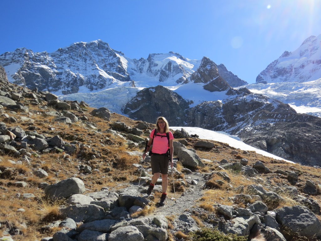 hier öffnet sich ein fantastischer Blick auf die Bernina-Gruppe