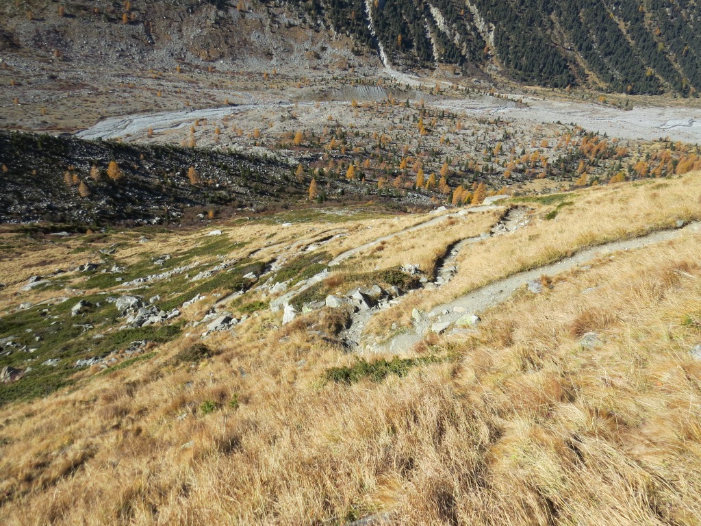 ...und biegen links ab hinunter zu der Schwemmebene auf der Val Roseg