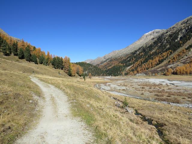 alles an der orografisch rechten Talseite verläuft oberhalb der Fahrstrasse, der ruhige und schöne Wanderweg
