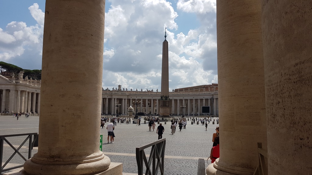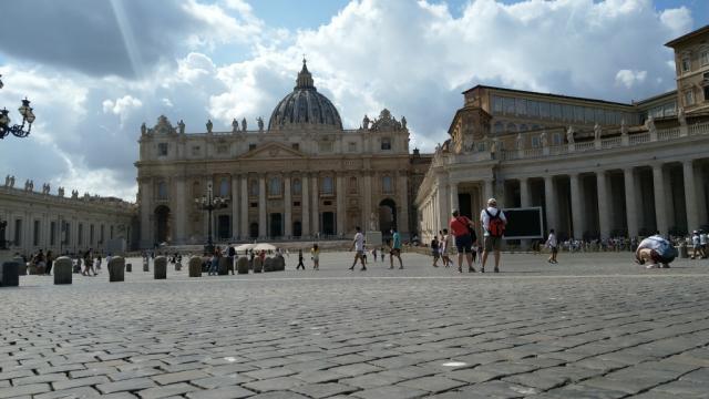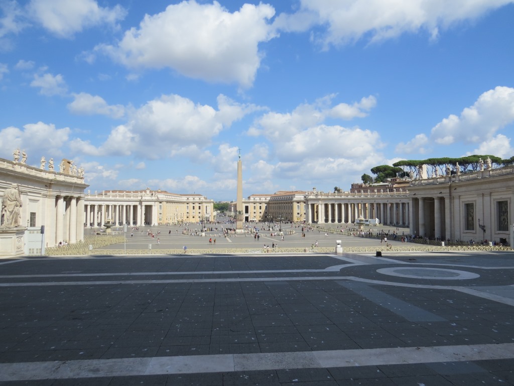 wir verlassen den Petersdom und treten hinaus auf den Petersplatz